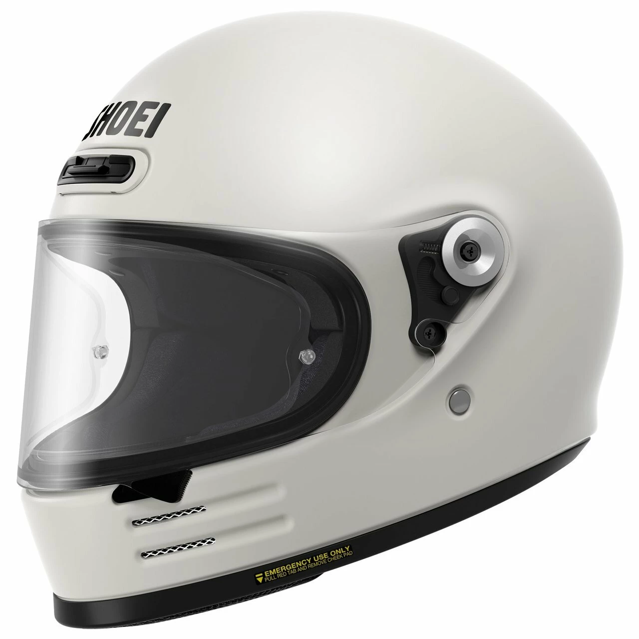 D-ring chin strap, in keeping with itβs classic look and feel. For additional comfort, the helmet uses Shoeiβs 3D liner and cheek pads, which are detachable and washable. For additional safety, the Glamster includes emergency release cheek